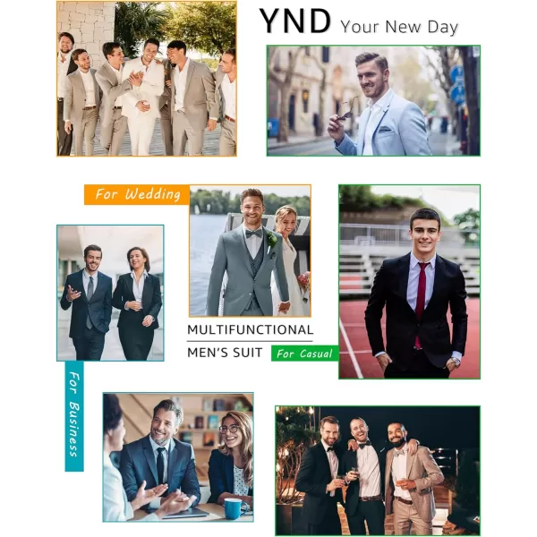 YND Mens Slim Fit 3 Piece Suit One Button Solid Jacket Vest Pants Set with TieSky
